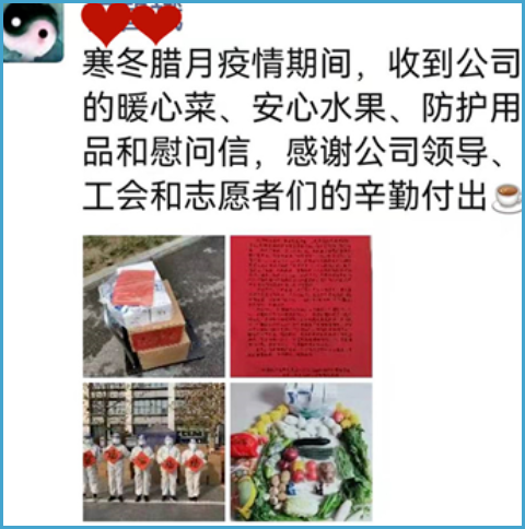 疫情期間,長慶油田各級(jí)工會(huì)主動(dòng)承擔(dān)保障責(zé)任,充分發(fā)揮各單位互助聯(lián)盟作用,自2021年12月26日起,公司工會(huì)部署各二級(jí)單位先后對(duì)在西安區(qū)域居家辦公,一線在崗員工封控家屬進(jìn)行摸排統(tǒng)計(jì),全面了解干部員工“特殊時(shí)期”生活所需,全城“尋糧”及時(shí)“訂貨”,“疫情防控不止,工會(huì)暖心不斷”服務(wù)全面上線,連日來,承載著工會(huì)滿滿關(guān)愛的安全“糧”、放心“菜”,已經(jīng)送至員工及家屬家中。