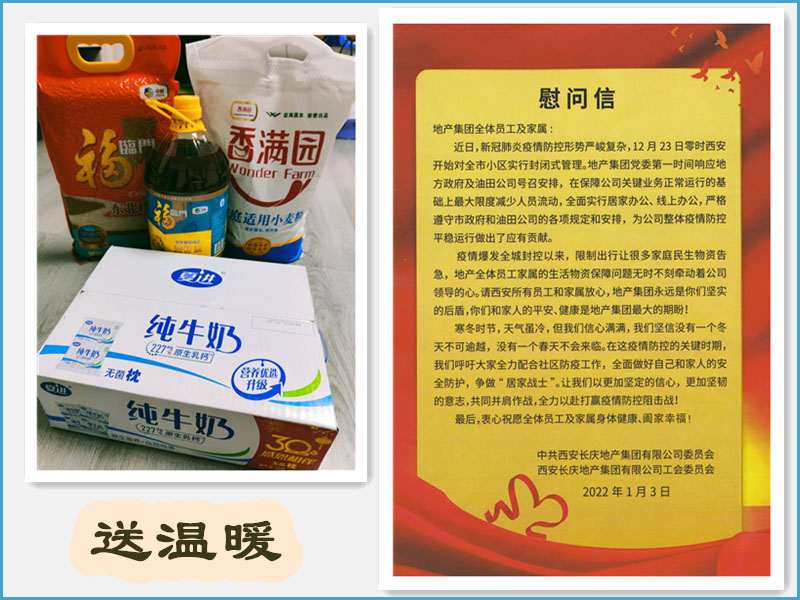 疫情發(fā)生后,長慶油田公司工會(huì)第一時(shí)間發(fā)布《共克時(shí)艱抗疫有我》的倡議書,以及《關(guān)于開展2022年元旦春節(jié)期間送溫暖活動(dòng)及疫情期間員工服務(wù)保障工作的通知》,號(hào)召各級(jí)工會(huì)全面行動(dòng)起來,聚焦困難群體,下?lián)軐m?xiàng)幫扶資金,重點(diǎn)關(guān)注孤寡獨(dú)居,一老一少,確診、疑似及隔離觀察人員、突發(fā)疾病員工、海外員工家屬等群體,定期進(jìn)行開展慰問,把組織關(guān)懷落細(xì)落實(shí),解決員工后顧之憂,維護(hù)油田發(fā)展穩(wěn)定大局。