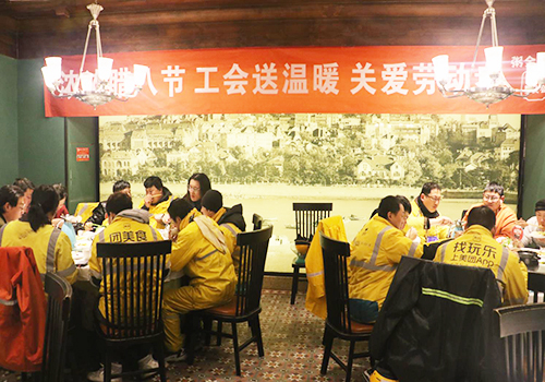 “今天下雪天很冷,市南工會(huì)把我們環(huán)衛(wèi)工請(qǐng)進(jìn)屋里,讓我們?cè)谂D八節(jié)喝上一碗熱乎乎的八寶粥,不僅身體暖和了,心也暖和了。”郭師傅捧著臘八粥說(shuō)。