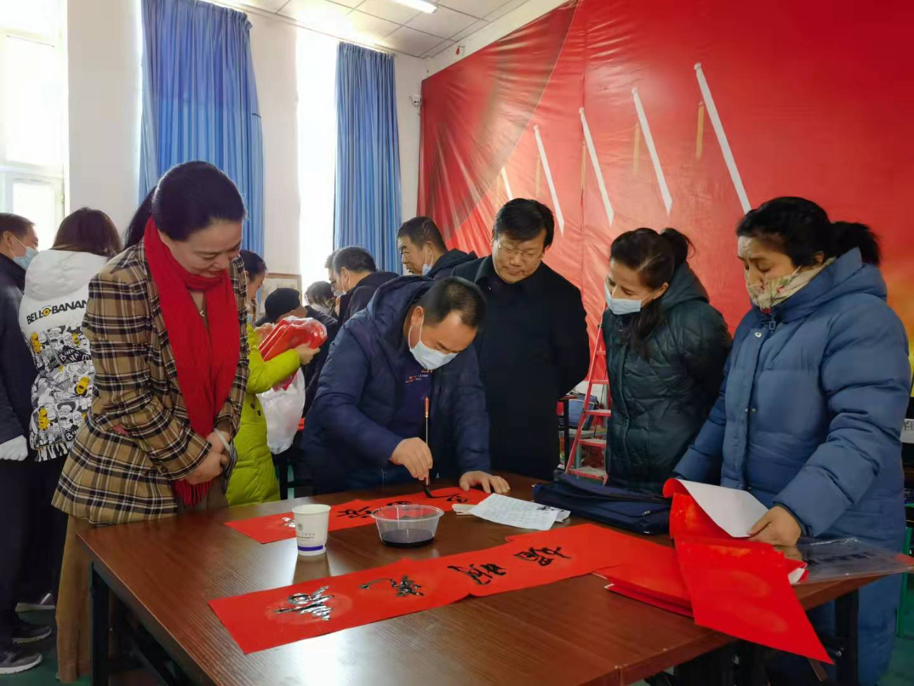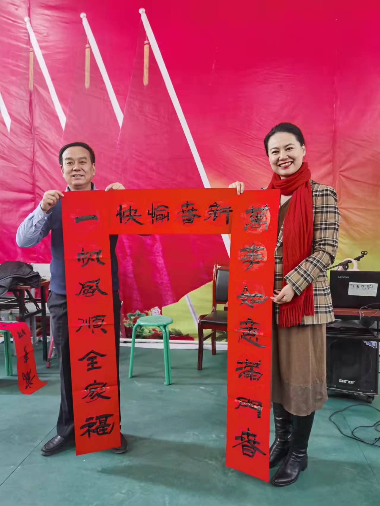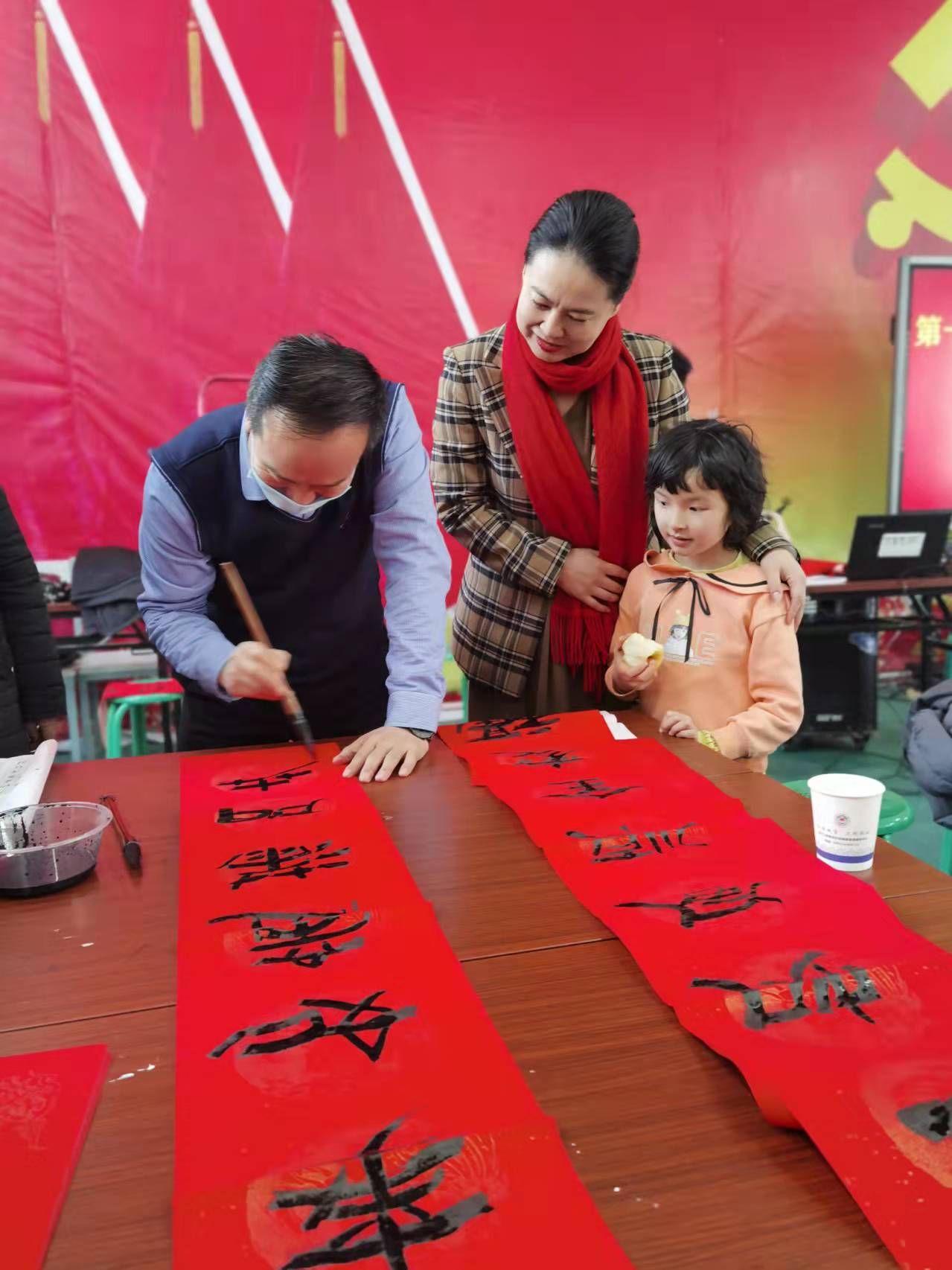 活動(dòng)現(xiàn)場,書法家們揮毫潑墨,高雅的書法作品,紅彤彤的春聯(lián)增添了喜慶的“年味”。