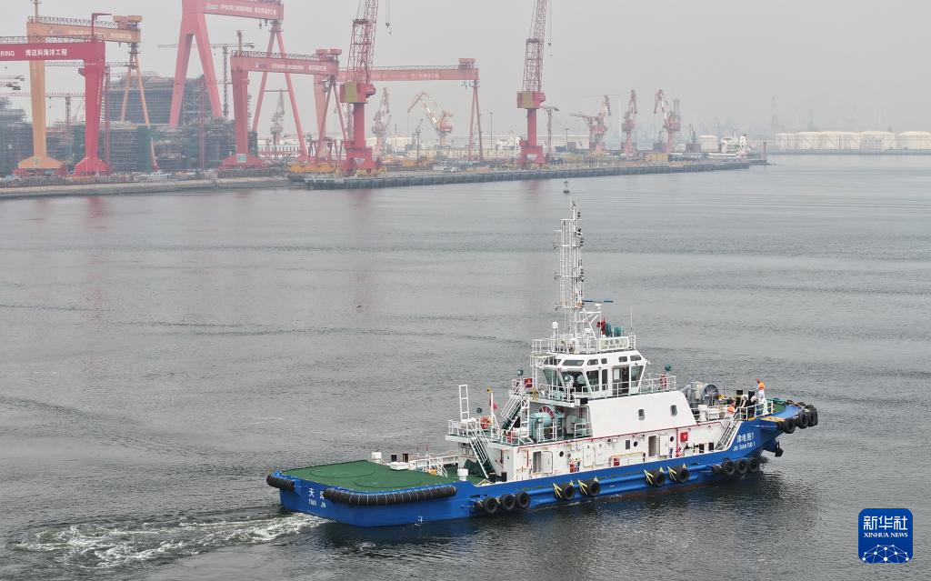 8月13日,由4艘純電動(dòng)港作拖輪組成的“綠色艦隊(duì)”在中船天津碼頭鳴笛啟航。