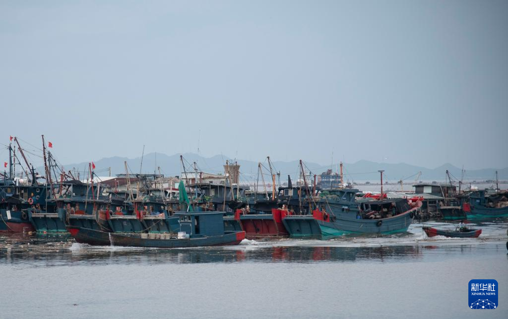 8月13日,兩艘漁船駛?cè)胛挥趶V東省潮州市饒平縣汫洲鎮(zhèn)的三百門漁港躲避臺(tái)風(fēng)。新華社記者 洪澤華 攝