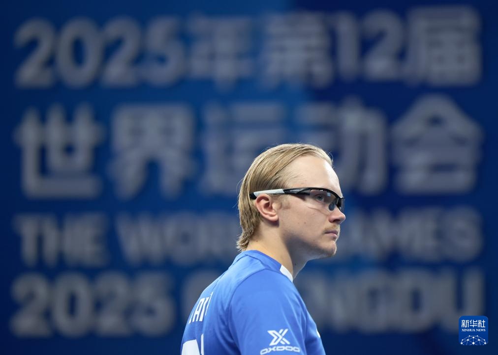 8月13日,芬蘭隊球員?;ㄇ白螅┰诒荣愔?。新華社記者 江漢 攝