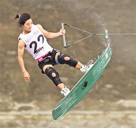 手拉滑索、腳踏滑水板,越過障礙,起跳、翻轉(zhuǎn)、回落水面……今天下午,在成都世運(yùn)會三岔湖桃花島滑水項(xiàng)目賽場,中國選手徐露憑借驚艷表現(xiàn)獲得69.56分,摘得女子尾波滑水自由式項(xiàng)目的金牌。