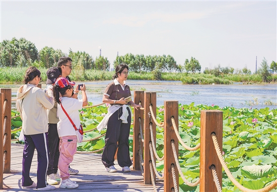 8月10日,游客在瑪納斯國家濕地公園游玩。
