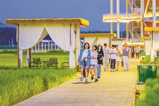 8月10日晚,游客在河北省遵化市一處景區(qū)賞景游玩。