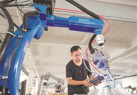 8月11日,工人在河北省秦皇島市海港區(qū)一家機(jī)器人生產(chǎn)企業(yè)的車間工作。