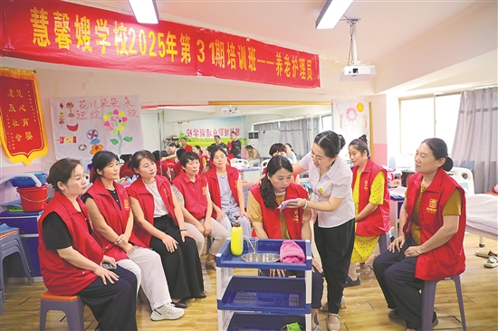 8月13日,在安徽省阜陽市潁東區(qū)慧馨嫂職業(yè)培訓學校內,學員們正在進行養(yǎng)老護理技能培訓。近年來,潁東區(qū)人社局、區(qū)總工會結合市場需求,通過“理論+實操”的方式,免費為有就業(yè)需求的返鄉(xiāng)農(nóng)民工、失業(yè)人員等群體提供月嫂、家政保姆、養(yǎng)老護理等職業(yè)技能培訓,幫助他們提升就業(yè)技能,拓寬就業(yè)增收渠道。本報通訊員 宿飛 李夢雪 攝