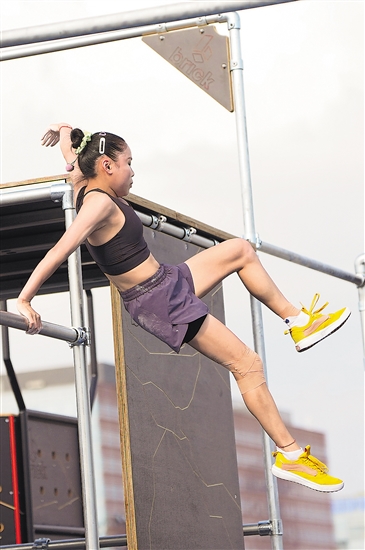 中國選手商春松在跑酷女子自由式?jīng)Q賽中。新華社記者李嘉南 攝