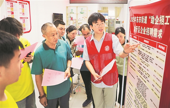 日前,安徽省六安市金安區(qū)東市街道建來社區(qū)工作人員向轄區(qū)居民和新就業(yè)形態(tài)勞動者介紹企業(yè)用工信息。據(jù)悉,金安區(qū)相關(guān)部門積極采取“線上+線下”等多項(xiàng)舉措,及時把“就業(yè)福利”送到居民家門口,既緩解企業(yè)招工難,又幫助群眾實(shí)現(xiàn)就地就近就業(yè)。本報(bào)通訊員 田凱平 攝