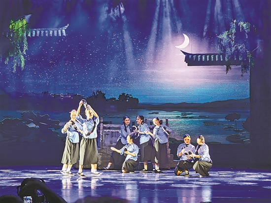 8月13日晚,北京民族文化宮大劇院內(nèi),大型辰河高腔紅色現(xiàn)代戲《賀龍井畔朵朵蓮》首次亮相京城。辰河高腔發(fā)源于湖南省瀘溪縣浦市鎮(zhèn)。該劇以賀龍駐防瀘溪縣浦市古鎮(zhèn)為歷史背景,講述湘西浦市古鎮(zhèn)波瀾壯闊的紅色革命史詩。