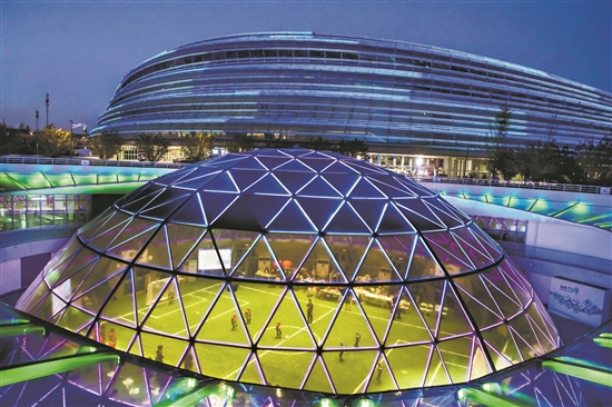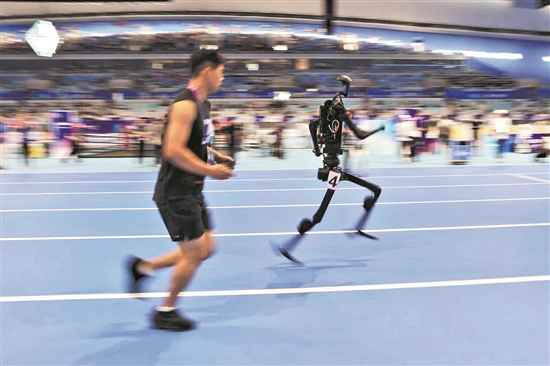8月13日,人形機器人足球5V5預(yù)選賽在國家速滑館“熊貓眼”舉行?!靶茇堁邸蔽挥凇氨z帶”西廣場下沉庭院,是全球首個人形機器人賽訓(xùn)基地,也是本次運動會的重要基礎(chǔ)設(shè)施。