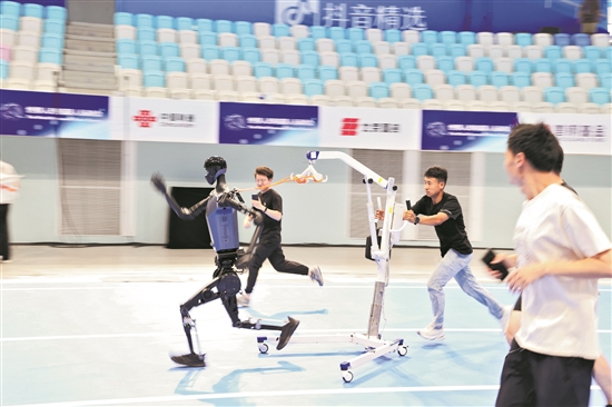 8月11日,天工機器人團隊在國家速滑館進行賽前測試。