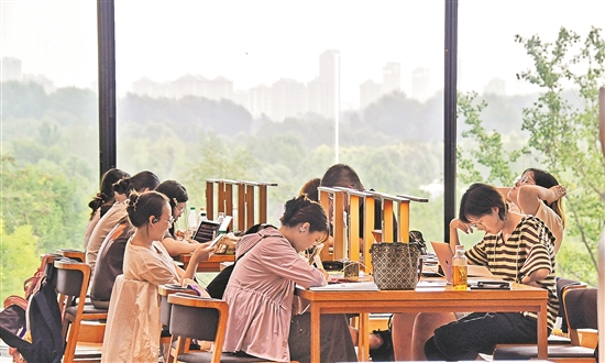 8月15日,市民在北京市通州區(qū)大運(yùn)河沿岸的北京城市圖書館閱讀。近年來,北京市采取一系列舉措,改善了大運(yùn)河水域生態(tài)環(huán)境,綠化覆蓋率提升至80%。新華社記者 李欣 攝