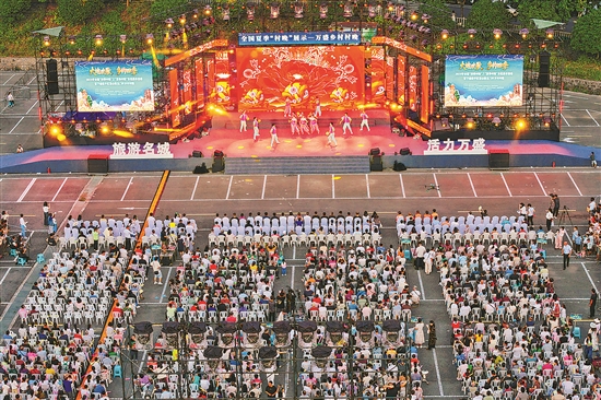 8月16日晚,重慶市萬盛經(jīng)開區(qū)萬盛旅游度假區(qū),精彩的“夏季村晚”文旅活動(dòng)吸引了不少游客來此觀看演出、選購特產(chǎn)、消夏避暑。