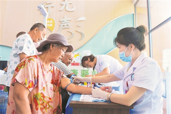 8月18日,在山東省青島市城陽區(qū)夏莊街道社區(qū)衛(wèi)生服務(wù)中心,醫(yī)生為社區(qū)居民義診。